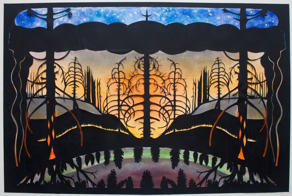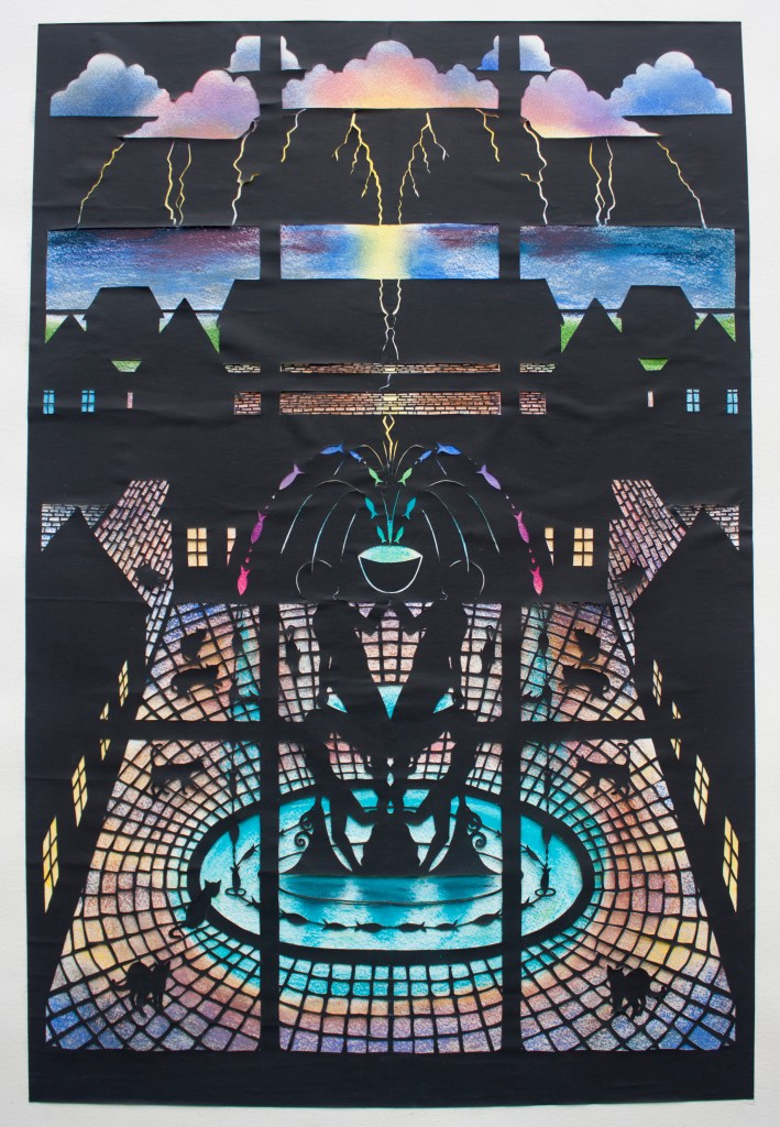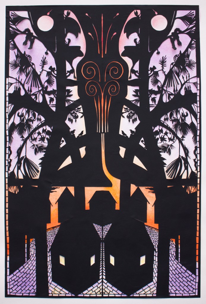 This Darkness Light, 2020, hand-cut paper on pastel, 30 x 20 inches