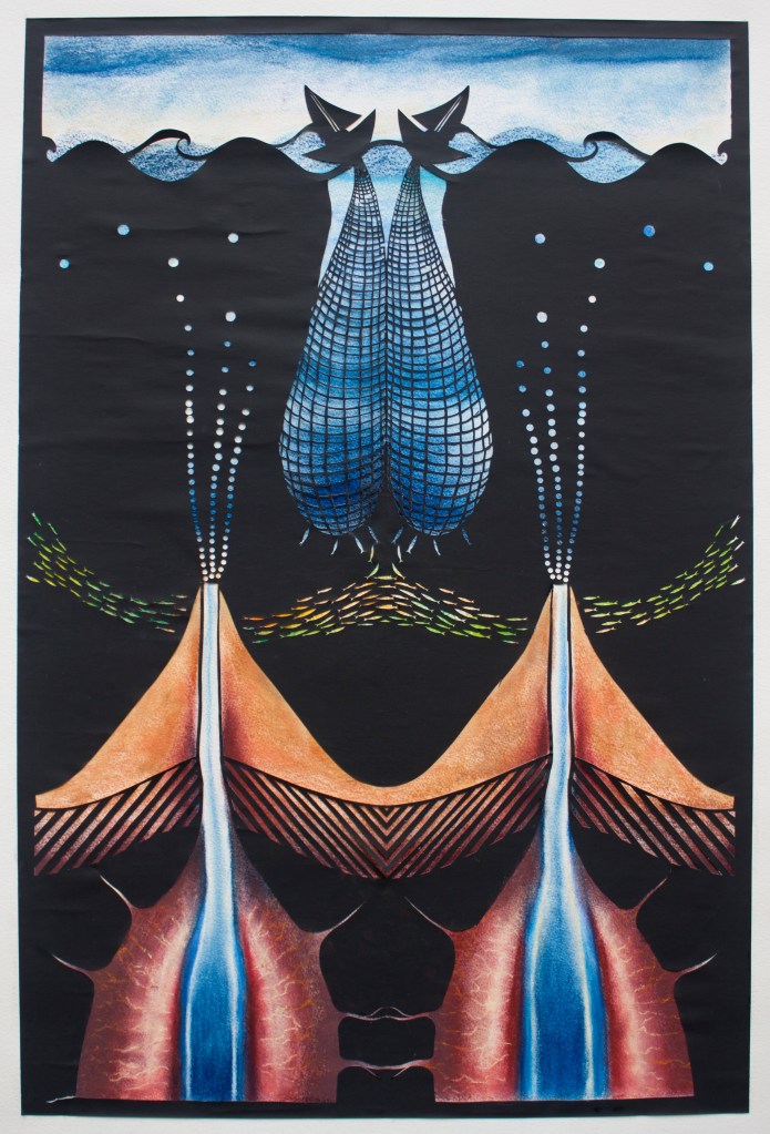Effluvia, 2020, hand-cut paper on pastel, 20 x 30 inches
